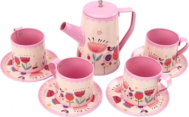 Ta popoln otroški čajni set prinese čar kavarne naravnost v otroško sobo. Zahvaljujoč lahki in trpežni kovinski izdelavi lahko otroci zlahka strežejo čaj ali kavo svojim prijateljem in plišastim igračam. Rožnata izvedba s cvetličnim dekorjem takoj pritegne pozornost in spodbuja ustvarjalno igro vlog.