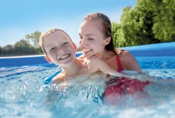 Trdne stene in napihljiv zgornji rob zagotavljajo stabilnost. Priključki omogočajo povezavo s filtracijo za čisto vodo skozi celo sezono.