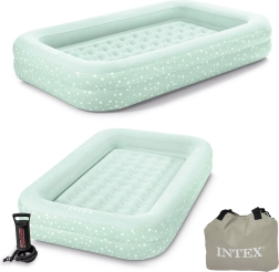 Napihljiva vzmetnica Intex dimenzij 168x107x25 cm je odlična za otroke na potovanjih – v hotelih, kampih itd. Izdelana je iz trpežnega PVC-ja in prekrita z mehkim, vodoodpornim velurjem v prijetni zeleni barvi, ki odlično paše v vsako sobo. Boston ventil omogoča enostavno praznjenje v eni minuti, nato pa se lahko vzmetnica zloži in shrani.