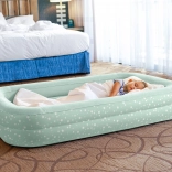 Ta napihljiva vzmetnica je zasnovana za otroke in ima rahlo dvignjene robove, ki preprečujejo padce z vzmetnice. Je idealna za notranjo uporabo kot otroška postelja.