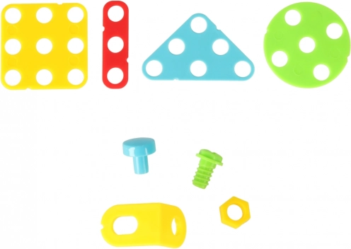 Ta kreativna mozaika v praktičnem kovčku ponuja otrokom neomejene možnosti gradnje – od preprostih slik do 3D konstrukcij. Barvni deli, vijaki in nastavki se zlahka kombinirajo, medtem ko varen otroški vrtalnik na baterije in izvijač dodata igri realističen element malega mojstra.
