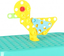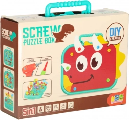 Perforirana plošča omogoča privijanje barvnih zatičev in delčkov v najrazličnejše vzorce – od sončka do prikupnih živalic.