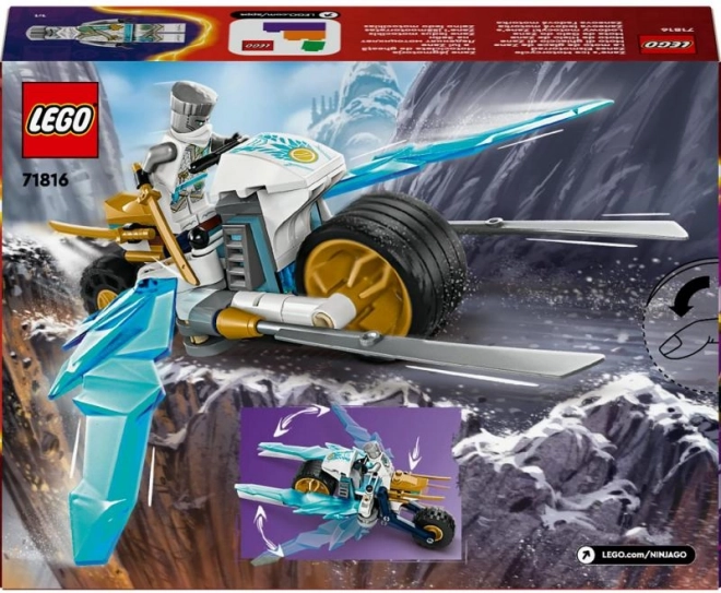 Zaneovo ledeno motorno kolo je odličen za otroke od sedmih let, ki želijo doživeti akcijske prizore iz sveta Ninjago. Motorno kolo je opremljeno s premičnimi kolesi, zlatimi rezili in zadnjim vzmetenjem. Podajte se na avanturo s herojem Zanom v novi turnirski opremi in pustite, da vas prevzamejo zgodbe iz Ninjago.