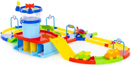 Sistem večbarvnih prog z mostovi, predori in priključki za vozila in letala zagotavlja gladko vožnjo in obilico igralnih scenarijev.