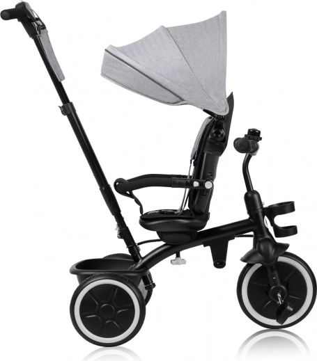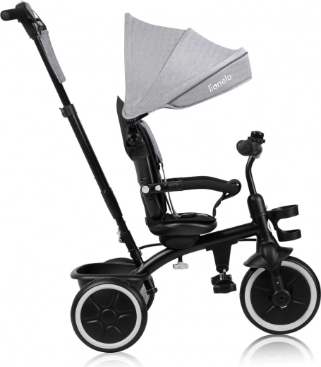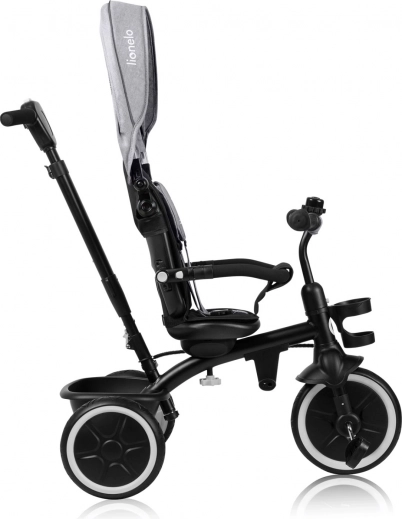 Tricikel LIONELO Berry Grey Stone raste z vašim otrokom – od prvih sprehodov s starševskim vodenjem do samostojne vožnje. 360° vrtljiv sedež omogoča nastavitev položaja v ali proti smeri vožnje, medtem ko višinsko nastavljiv ročaj zagotavlja udobno upravljanje za vsakega starša. Zahvaljujoč PU kolesom z gumiranim slojem se vam ni treba bati predrtij, vožnja pa je tiha in tekoča.