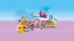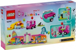 Gabbyjeva plesna dvorana ni samo o diskotu! Vključuje Gabby, Daniela Mačka, Vilo Mačko, Morsko Mačko ter veliko glasbenih dodatkov - vključno s party avtobusom z DJ pultom, vrtljivo plesno ploščadjo, kitaro, dvema mikrofonoma in bleščečo diskokroglo. Prostor je pripravljen za neskončno zabavo! Dodatek vključuje balone, drsalke, kokice in dve kozarci polni sorbeta v kotičku za sprostitev, enako kot izstreljevalnik in pločevinke za igro potapljanja. Set zaokrožuje torta za Gabby, darila in tobogan. Del kompleta je velik začetni kos za enostavno sestavljanje za otroke. Barvni vodnik s slikami ponuja pregledna navodila.