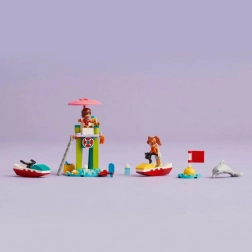 Z LEGO Friends plažnim vodnim skuterjem Leo postane reševalec in z daljnogledom opazuje ocean. Čudovit razgled je popoln tudi za opazovanje delfinov. Leo se pridruži prijateljici Candi in skupaj se podita z vodnimi skuterji. Otroci bodo vzljubili podrobnosti, kot je rak, ki rad brska po hladilniku in išče sladoled!