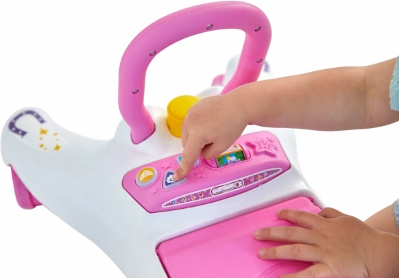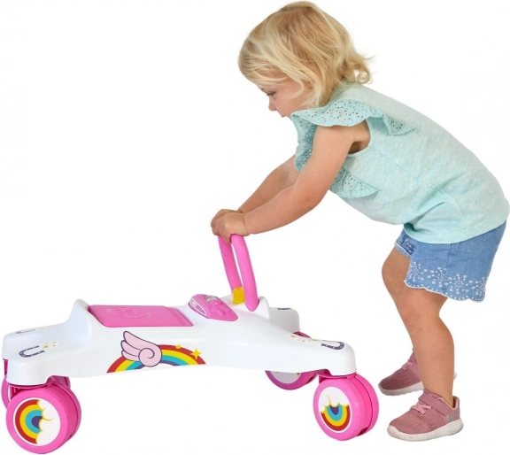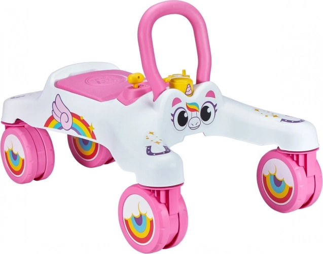 Ljubek poganjalec z motivom samoroga je odličen sopotnik za vsakodnevno igro in vadbo stabilnosti. Zahvaljujoč vrtljivim kolescem 360° se zlahka obrne na mestu, otrok pa z njim tekoče zapelje tudi skozi ožje prostore. Robustna plastična konstrukcija nudi oporo in zanesljivost, medtem ko hupa vožnji doda zabavo.