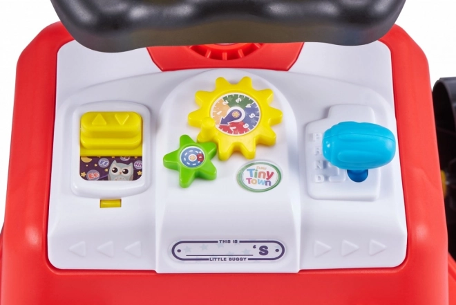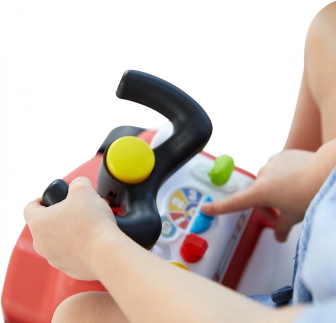 Volan s hupo in barvnimi upravljalnimi elementi podpira domišljijsko igro in fino motoriko. Zadnji ročaj manjšim otrokom služi kot opora pri učenju hoje, starejši pa bodo uživali v vožnji z »odrivanjem« z nogami.