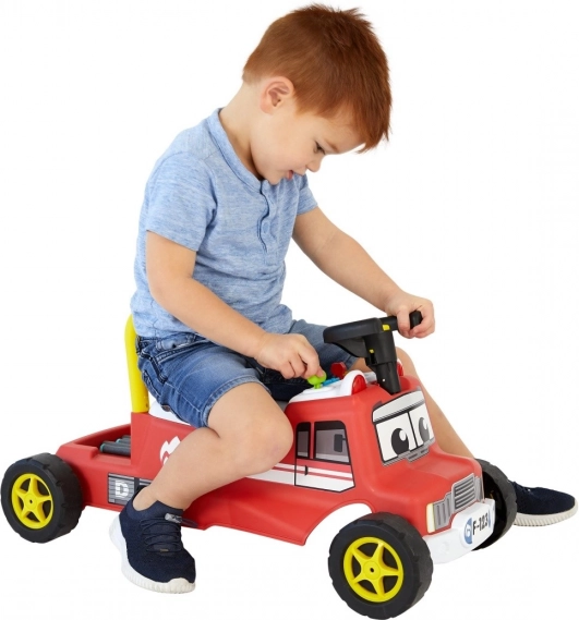 Otroški poganjalec v obliki gasilskega vozila motivira k aktivnemu gibanju ter razvija ravnotežje in koordinacijo. Robustna plastična izdelava, udoben sedež in lahko oprijemljiv ročaj zagotavljajo udobno in varno zabavo.