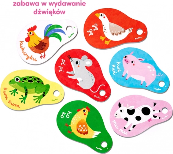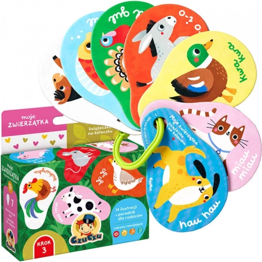 Odkrijte svet živalic s pametno knjižico na obročku znamke CzuCzu za otroke od 12 mesecev. Kratka besedila, lepe ilustracije in čvrste kartice podpirajo razvoj govora, vidnega zaznavanja in fine motorike. Praktičen obroček za obešanje je idealen za voziček ali posteljico.