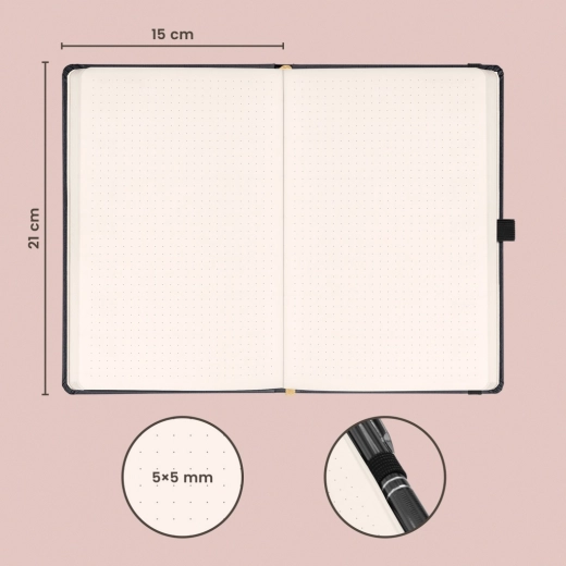 Idealen za ustvarjalne duše in organizirane profesionalce, točkast zvezek NOTIQUE Balacron ponuja praktično in estetsko rešitev za vaše zapiske: