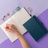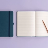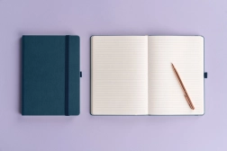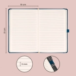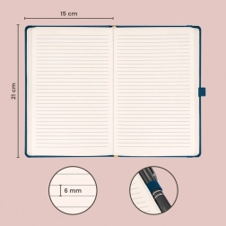 Klasičen modri črtasti notes za vsakodnevno uporabo. Idealen za zapiske z dela ali šole, zlahka prilagodljiv z možnostjo vtiskovanja (embosiranja) logotipa podjetja.