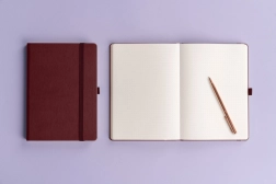 Pikčasti zvezek v elegantni vinski barvi, idealen za ljubitelje klasike in elegance. Odličen za zapisovanje zapiskov z možnostjo personalizacije z logotipom podjetja.
