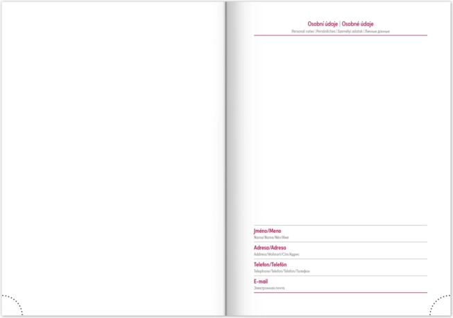 Praktična razporeditev s tedenskim pregledom in češko‑slovaškim koledarjem, dopolnjenim z angleščino, nemščino, madžarščino in ruščino, zagotavlja odličen pregled. Ne manjkajo mesečni in letni načrtovalni koledarji, prostor za zapiske ter koristni zemljevidi in seznam imen.