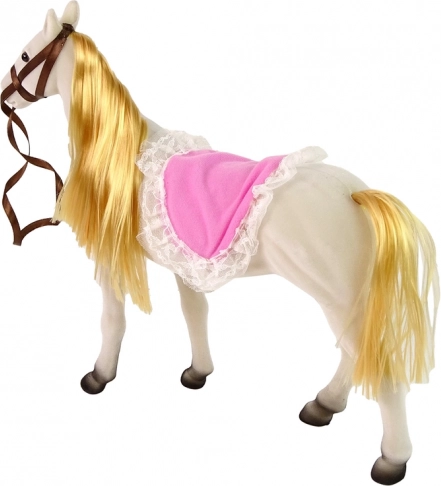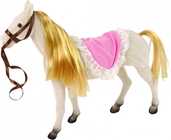Set vključuje lutko princeso z gibljivimi udi in belega konja, ki je izdelan iz prijetnega materiala za resnični videz.