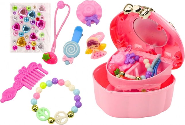 Ta kovček za nakit v obliki srca je popolno darilo za vsako malo princesko. Čudovito okrašen, na voljo v rožnati ali vijolični barvi, vsebuje vrsto modnih dodatkov.