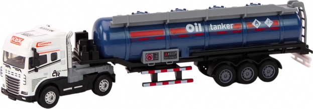 Realistični model cisternskega tovornjaka v merilu 1:24 ponuja otrokom napeto in poučno igro. Zahvaljujoč odklopni prikolici, svetlobnim in zvočnim učinkom (zagon motorja in vzvratna vožnja) ter pogonu, ki omogoča samostojno gibanje, si bodo otroci privoščili veliko zabave. Model ima podrobno izdelavo z belo kabino in izpolnjuje standarda CE in EN71, primerno za otroke od 3 let.