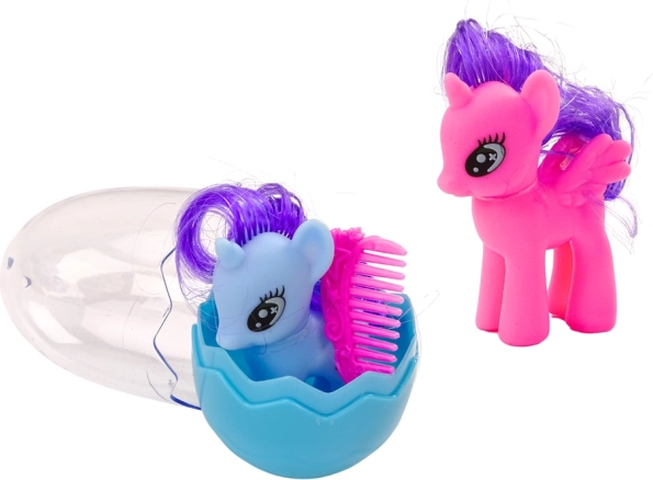 Figurica samoroga z glavnikom in grivo je čudovita igrača, ki bo zagotovo razveselila vsakega otroka. Samorog ima dolge barvite lase, ki jih je mogoče česati in oblikovati. Njegov videz je čaroben in privlačen, kar spodbuja igro. V paketu je poseben glavnik, ki služi za česanje samoroške grive. Otroci lahko tako skrbijo za svojega samoroga ter mu ustvarjajo različne pričeske in sloge. Figurica je zapakirana v odpirajoče se jajce, ki doda element presenečenja in vznemirjenja. Otroci lahko jajce odprejo in odkrijejo svojega novega čarobnega prijatelja.