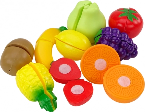 Ta komplet sadja za rezanje otrokom prinaša avtentično izkušnjo priprave hrane. Vsak kos je povezan z močnim ježkom, zato ga je mogoče z lahkoto “odrezati” s priloženim varnim nožem brez ostrih robov in znova združiti. Igra naravno razvija fino motoriko, potrpežljivost in domišljijo.