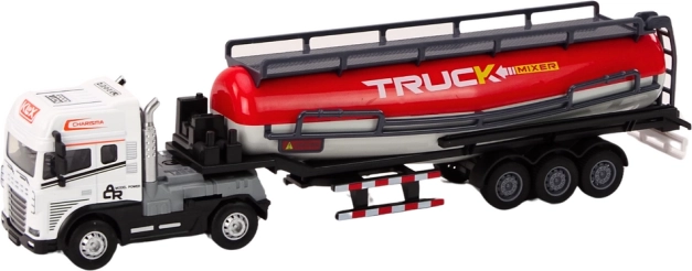 Ta tovornjak s cisterno verno posnema pravi vlačilec s polpriklopnikom. Bela kabina in rdeča cisterna pritegneta na prvi pogled, medtem ko luči in realistični zvoki (zagon motorja, vzvratna vožnja) dodajo pristnost. Priklopnik lahko enostavno odklopite, zato se lahko otroci igrajo z vlačilcem in cisterno tudi ločeno.