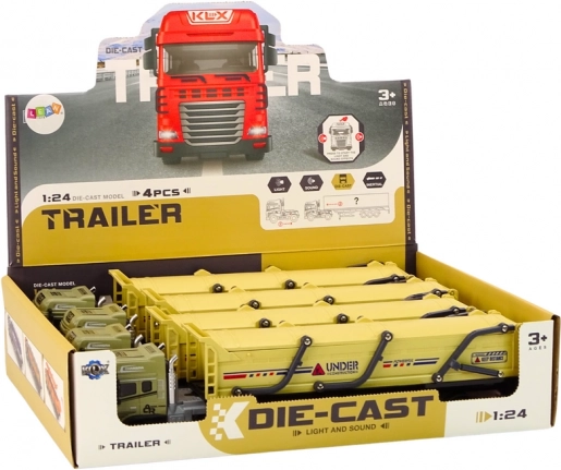 Rjav tovornjak TIR s prikolico otrokom ponuja realistično izkušnjo prevoza. Zahvaljujoč dovršeni izdelavi je videti kot pravi cestni velikan, medtem ko luči in zvoki ob pritisku na kabino poudarijo vzdušje igre. Merilo 1:24 je idealno za igro doma in na prostem.