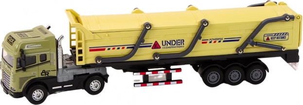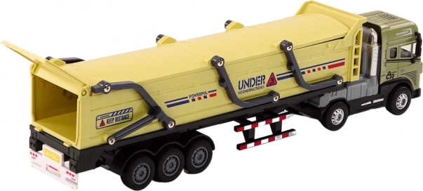 Realističen tovornjak s prikolico v merilu 1:24 bo s svojo funkcionalnostjo navdušil male voznike. Ponuja svetlobne in zvočne učinke, vztrajnikový pogon in odstranljivo prikolico. Odpirajoča se streha in vrata prikolice olajšata nakladanje peska ali gramoza ter spodbujata ustvarjalno igro. Varna zasnova, certifikata CE in skladnost z EN71.