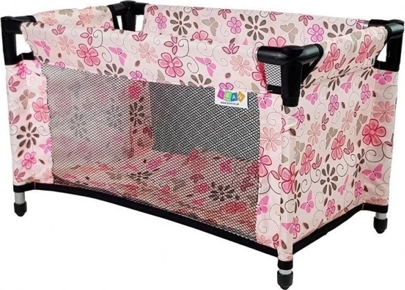 Iščete hkrati stilsko in praktično posteljico za punčke? Model Alice v rožnatih cvetlicah združuje varen mrežast dizajn z robustno konstrukcijo iz lahkih cevi in snemljivimi tekstilnimi deli. Zaradi kompaktnih mer je odlična tako za otroško sobo kot za potovanja.