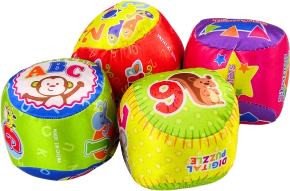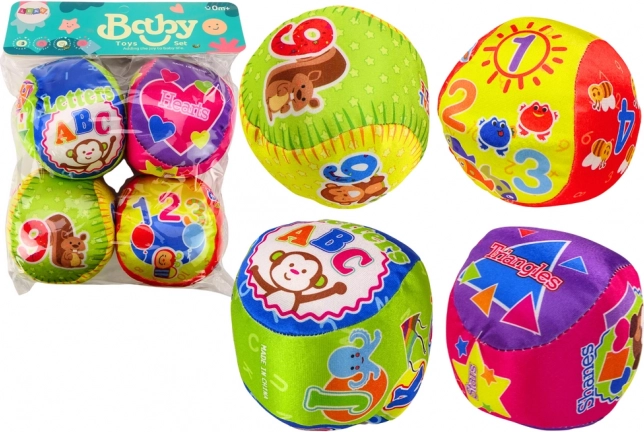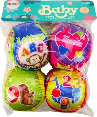 .Komplet 4 mehkih žogic za otroke je izobraževalna in interaktivna igrača, ki združuje učenje in zabavo. Vsaka žogica v kompletu ima edinstvene motive, ki spodbujajo učenje skozi igro. Barvite ilustracije živali in števil, ki otrokom pomagajo učiti se šteti in prepoznavati različne živali. Žogica z ilustracijami osnovnih geometrijskih likov, od katerih je vsak podpisan v angleščini, kar otroke uvaja v svet jezika in geometrije. Črke abecede, okrašene s podobami živali, zahvaljujoč katerim se otroci na zabaven način zlahka naučijo črk in njihovih glasov.