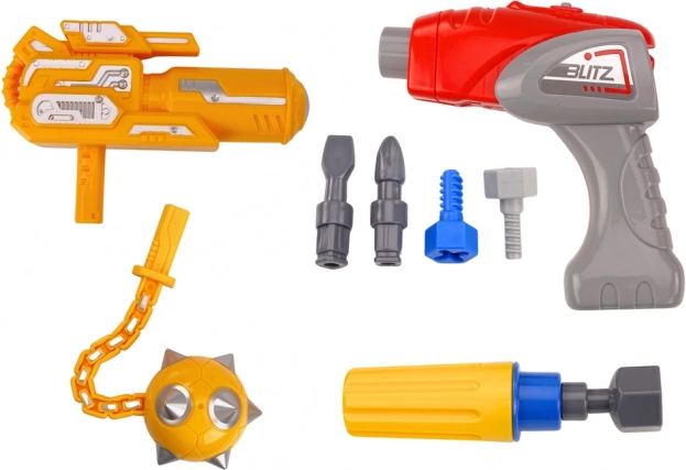 - Otroški vrtalnik, izvijač, 3 zamenljivi nastavki, rumeno “orožje” in kij