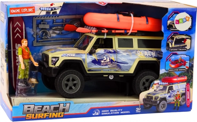 Terensko vozilo Serfera je idealna igrača za male ljubitelje vodnih pustolovščin. Vozilo v peščeni barvi z oznako serfa ima na strehi luči, ki zasvetijo ob pritisku na gumb, in oddaja realistične zvoke motorja. Na strehi je tudi čoln z vesli, ki igri doda še več pristnosti. Odpiralna vrata in prtljažni prostor omogočata enostavno namestitev figuric v notranjost vozila.