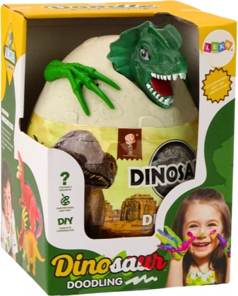 Jajce vsebuje vse potrebno za ustvarjalno barvanje. Naj otroci uporabijo svojo domišljijo pri barvanju dinozavrov.