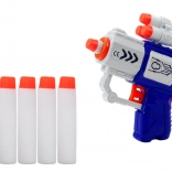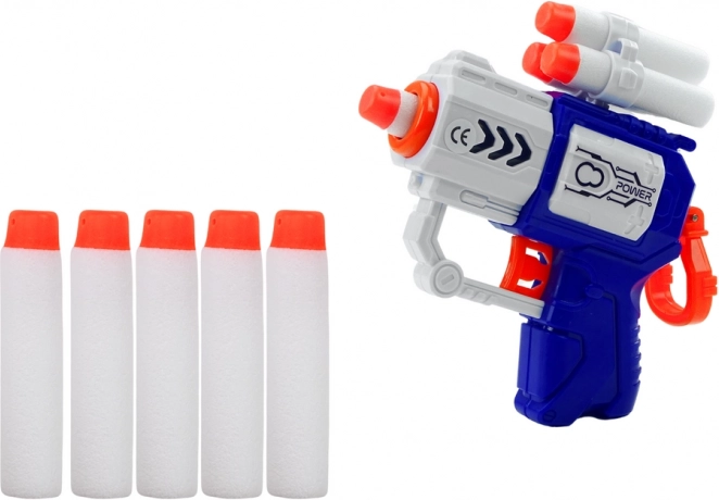 Komplet vključuje tudi pet mehkih puščic, ki so varne in ne predstavljajo nevarnosti za otroke. Puščice so lahke in prožne, kar zagotavlja natančno streljanje in zmanjšuje tveganje poškodb v gospodinjstvu. Pištola je zasnovana tako, da omogoča enostavno polnjenje in izstreljevanje puščic, kar omogoča tekočo in neprekinjeno igro.