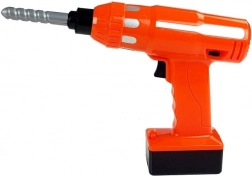 Otroški baterijski vrtalnik omogoča vijačenje in odvijačenje ter tri zamenljive »svedre«. Odličen za prve vaje z vijaki in maticami.