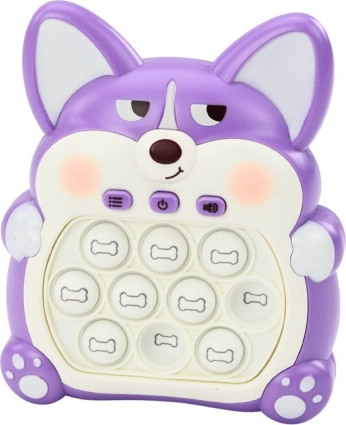 Igralna konzola Pop-It Lisjak v barvi vijoličaste je inovativna in interaktivna igrača, ki združuje zabavo z razvojem veščin. Zahvaljujoč zanimivim funkcijam z izboklinami in zvočnimi učinki igra postane še bolj vznemirljiva in pomaga otrokom razvijati svoje motorične in kognitivne veščine.