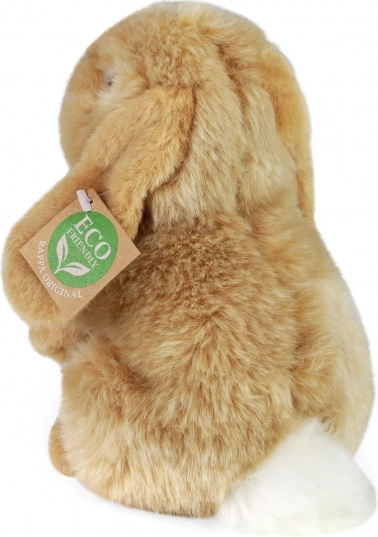 Plišasti zajček je izdelan iz recikliranih materialov, kar podpira trajnost in zmanjšuje ekološki odtis.