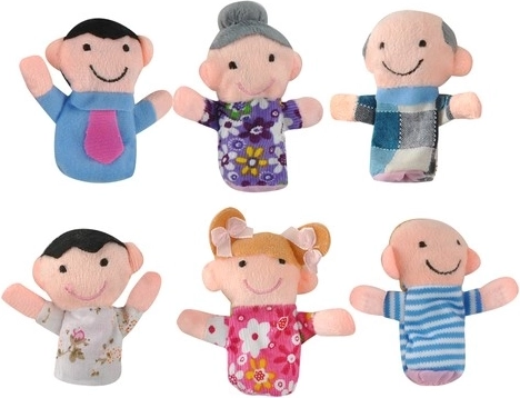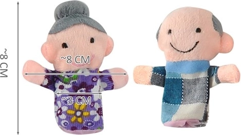 Naš komplet vsebuje 6 prstnih lutk, ki predstavljajo družinske like, od starih staršev do otrok. Primerne so za roke malčkov, a tudi odrasli lahko te lutke zlahka upravljajo na svojih manjših prstih.