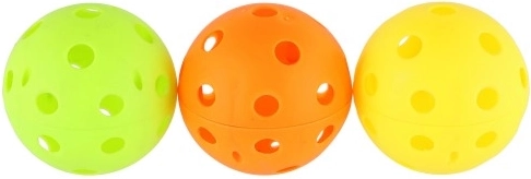 Komplet florbalnih žogic v treh barvah, ki bodo prav prišle ne le za vsako florbalno tekmo, temveč tudi za druge športe z žogo. Premer žogice: 7 cm Primerno za otroke od 3 let