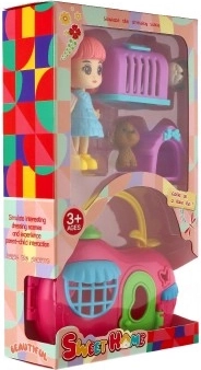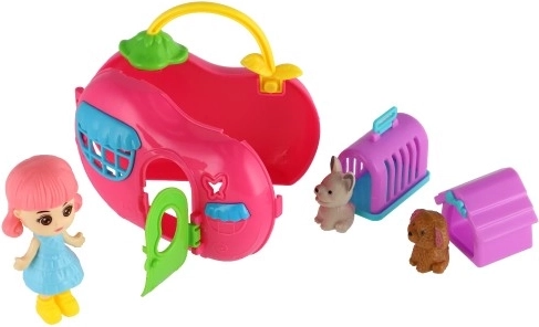 Ta barvit komplet otrokom prinaša svet domišljije in skrbi za živalice. Prenosna hiška z ročajem se zlahka zloži in prenaša, punčka se bo v njej neizmerno zabavala, dva ljubljenčka pa poskrbita za še več veselja. Zaradi kompaktnih dimenzij je set primeren tudi na poti.