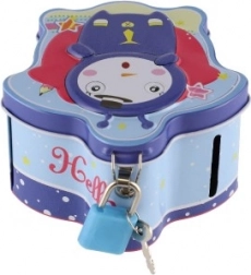 Ta otroška pločevinasta hranilnica je odličen pripomoček za spodbujanje otrok k varčevanju in vadbi štetja. Kovinska izvedba zagotavlja dolgo življenjsko dobo, reža na zgornji strani olajša vstavljanje kovancev, praktična ključavnica pa ohrani prihranke na varnem.
