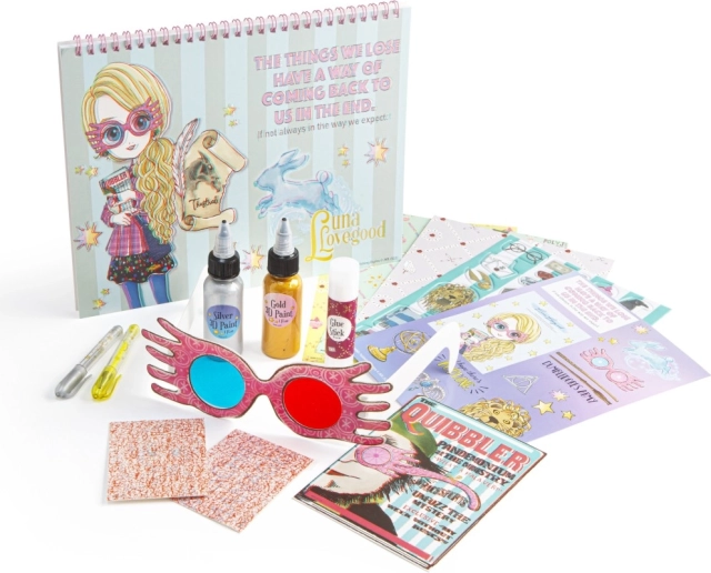 Komplet zvezka z obročki Harry Potter Luna Lovegood 3D – dobrodošli v očarljivem čarovniškem svetu z Dnevnikom Harryja Potterja! Ta dnevnik vas popelje v čarobni svet Bradavičarke in vam omogoča, da znova doživljate svoje najljubše trenutke. Komplet vsebuje – zvezek z obročki, penaste nalepke, 2× 3D barvi, 1× lepilo, 2× gel pisalo, list z nalepkami, 3× vzorčene nalepke, 2× kartico s presenečenjem, 1× kartico s 3D učinkom in 1× 3D očala.