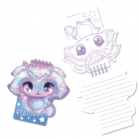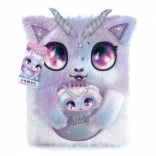 Vijolično–pastelni dizajn s sijočimi rožki, ušeski in velikimi zvezdnimi očmi. Dnevnik je užitek držati in razstaviti.
