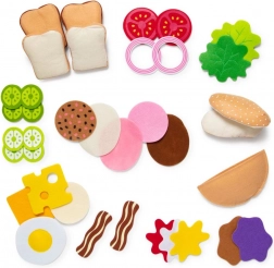 Ta komplet vsebuje 33 raznobarvnih kosov, ki otrokom omogočajo sestavljanje različnih vrst sendvičev. Igrača je zasnovana tako, da podpira domišljijsko igro in razvoj motoričnih spretnosti. Otroci se lahko igrajo sami ali v skupini, kar prispeva k njihovemu socialnemu razvoju.