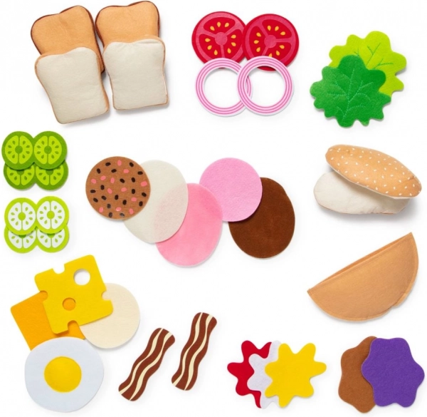 Komplet filcastih sendvičev je idealna igrača za otroke, ki želijo posnemati odrasle in razvijati svojo ustvarjalnost skozi kulinarične spretnosti. Med igro lahko otroci uživajo v ustvarjanju sendvičev in razvijajo socialne veščine.