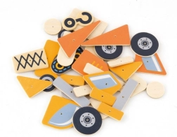 Pisane lesene oblike z zaobljenimi robovi razvijajo ustvarjalnost in fino motoriko otrok od 3. leta.