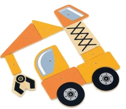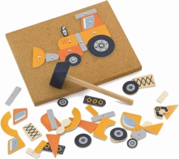 Odkrijte zabavno in izobraževalno igro v duhu Montessori. Otroci lahko poustvarjajo predloge gradbenih vozil ali si ustvarjajo lastne ideje. Deli imajo zaobljene robove in predvrtane luknje, zato se na plutovinasto tablo pritrjujejo preprosto in varno.