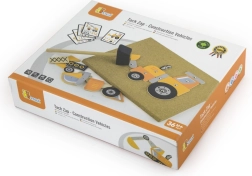 Kartice s predlogami navdihujejo otroke za sestavljanje bagerja, žerjava ali tovornjaka ter jih učijo sistematičnega pristopa.