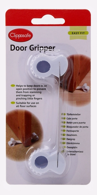 Zavorni zadrževalnik vrat Clippasafe drži vrata odprta in preprečuje, da bi otroci zaloputnili z vrati ter si jih priščipnili ali ukleščili prste.