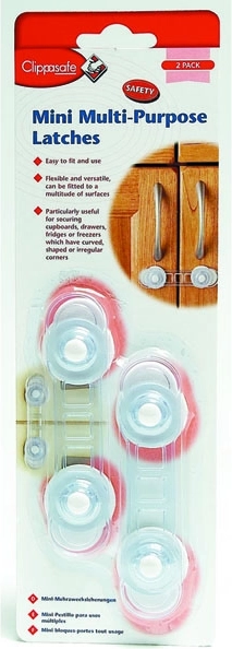 Večnamensko varovalo Clippasafe je enostavno za uporabo in pomaga preprečiti, da bi otroci odpirali omare, predale, hladilnike, zamrzovalnike, omarice in skrinje.