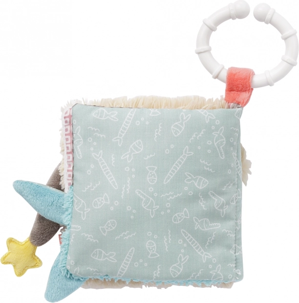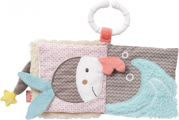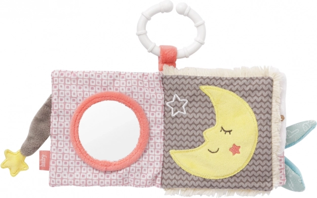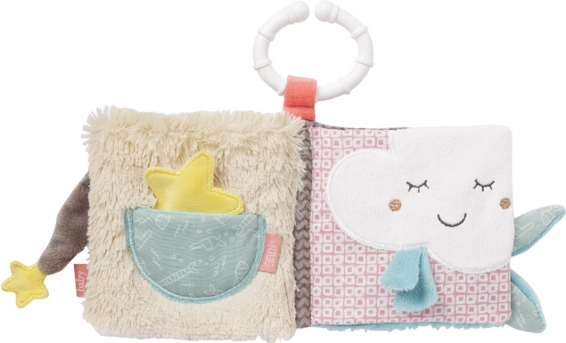 Interaktivna plišasta knjižica iz prijetnega materiala z veselimi motivi vabi otroke k sodelovanju in raziskovanju novih tipnih ter slušnih zaznav. Tip, sluh in vid vaših otrok bodo s to igračo spodbujeni, otroci pa se bodo hitro sami zaposlili. Zahvaljujoč C-obešalu lahko knjižico preprosto pritrdite kamor koli.
